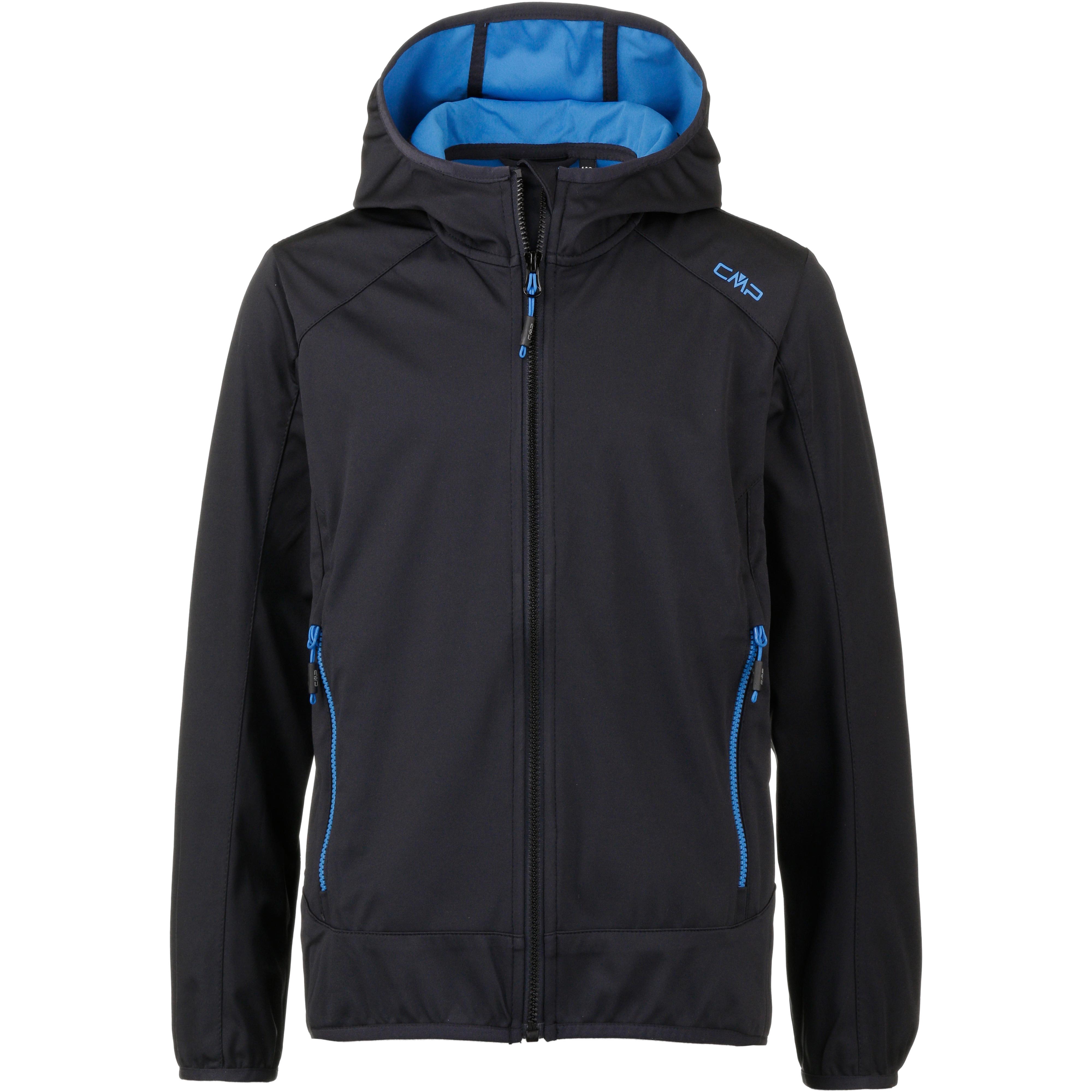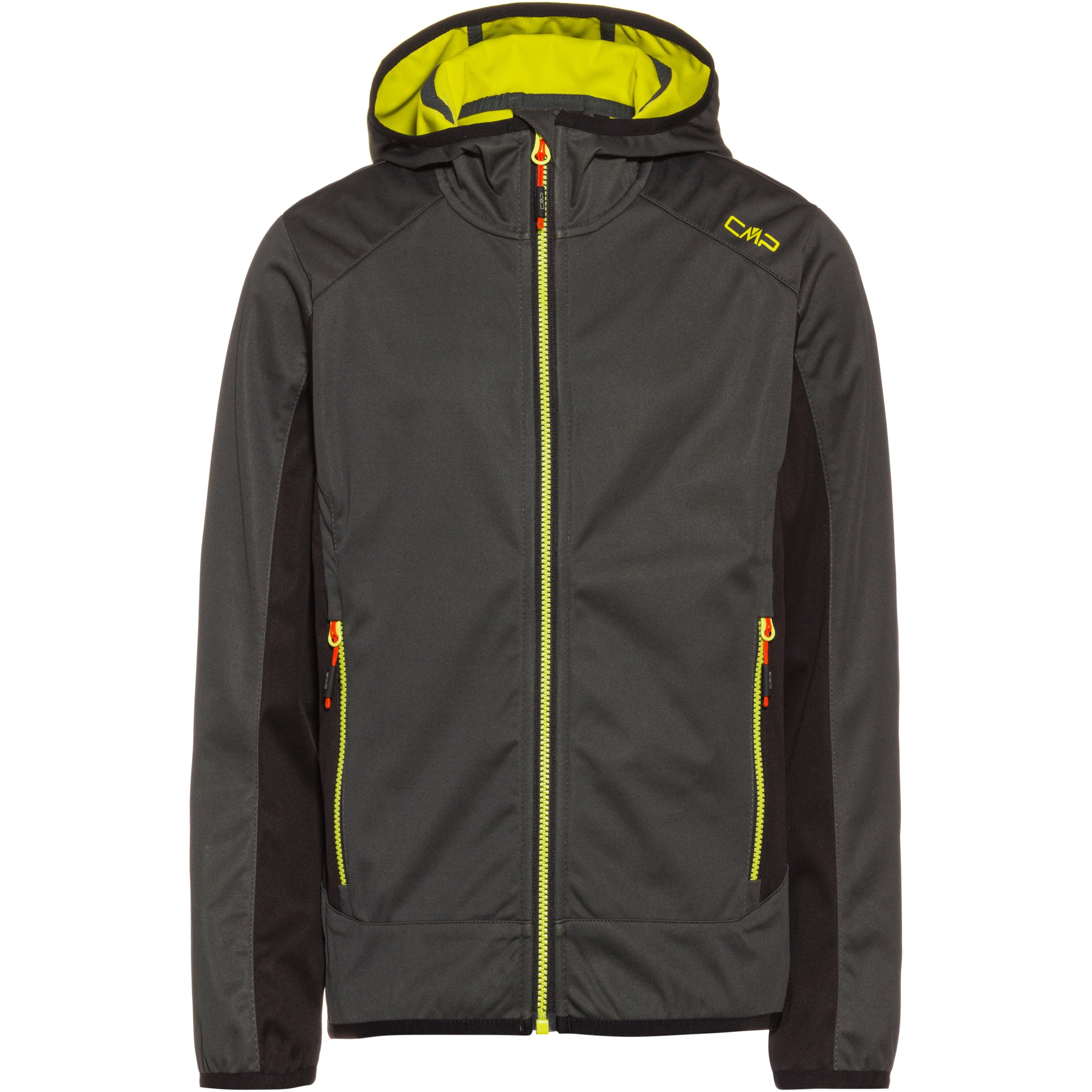 CMP Softshelljacke für Kinder, mit wind- und wasserdichter ClimaProtect®-Funktion; Wassersäule 8.000 mm; geräumige Kapuze; Kragen mit Kinnschutz; hinterlegter Frontreißverschluss; Seitentaschen mit Reißverschlüssen und Zipgaragen; verlängerte Zippbändchen; Material 100% Polyester.