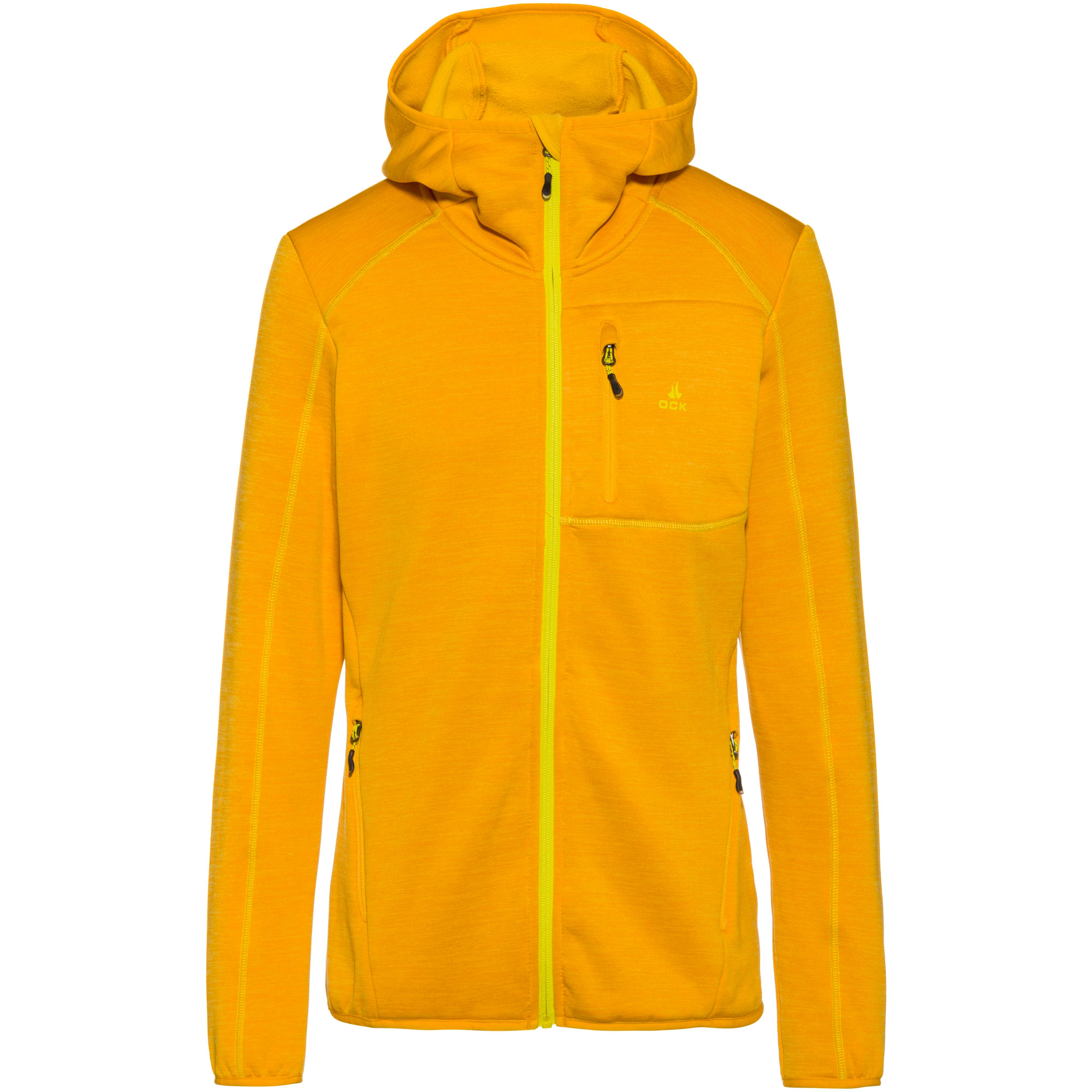 OCK Wärmende Fleecejacke mit flauschiger Innenseite; geräumige Kapuze; Kragen mit Kinnschutz; hinterlegter Frontreißverschluss; 1 Brust- und 2 Seitentaschen mit Reißverschlüssen und Zipgaragen; verlängerte Zippbändchen; Material 95% Polyester, 5% Elastan.