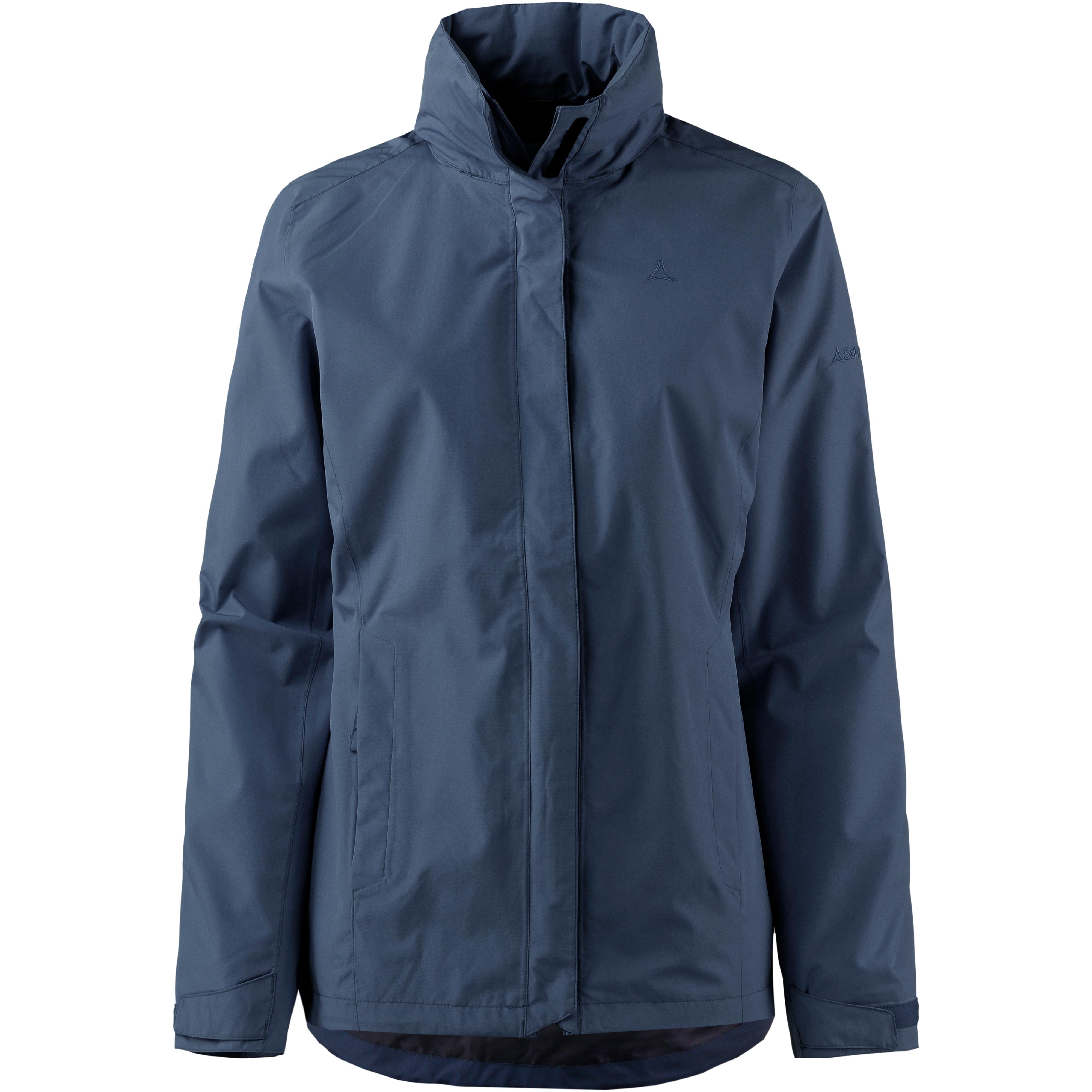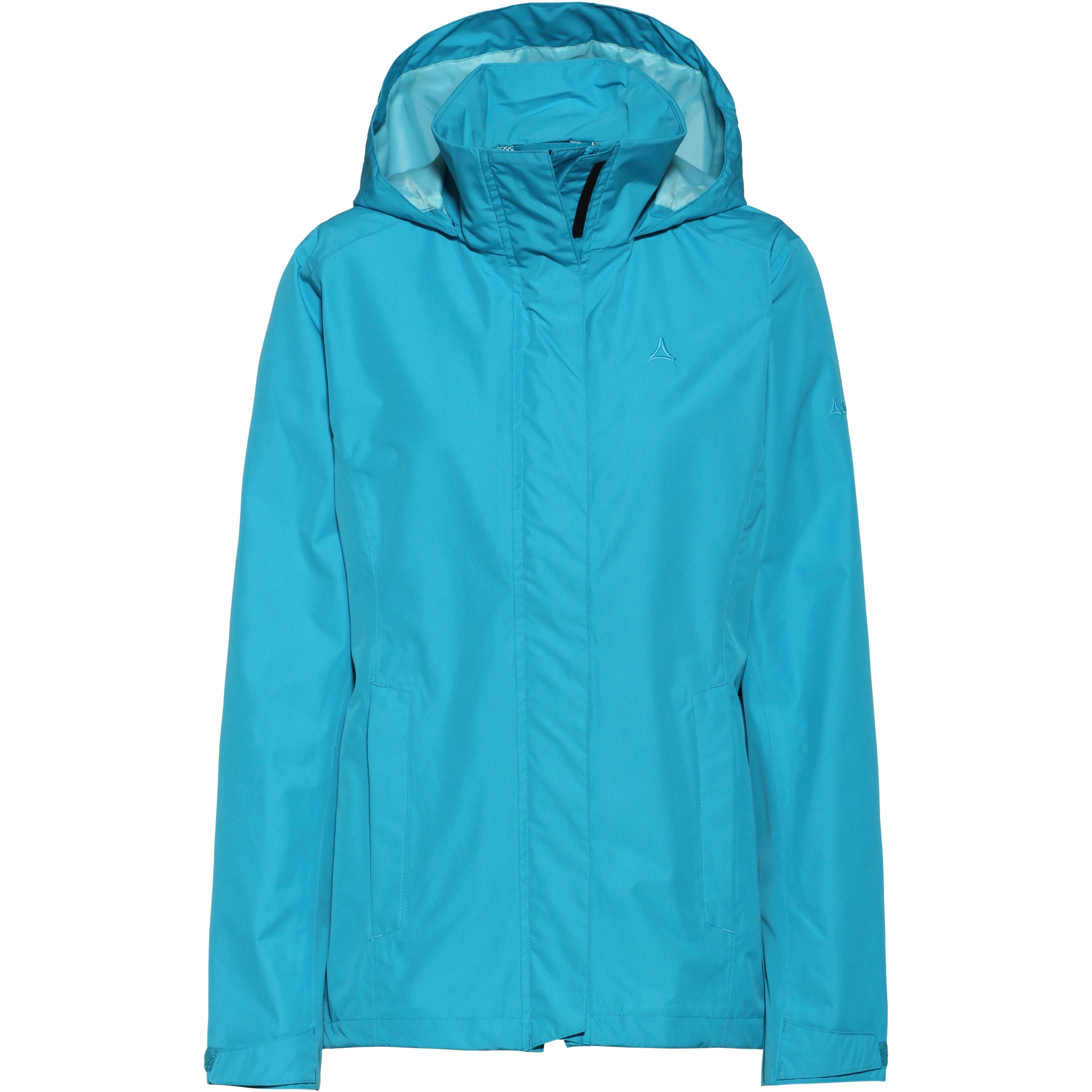Schöffel SEVILLA 2. PFC-frei hergestellte Regenjacke aus 2-Lagen Venturi Gewebe mit wasser- und winddichter sowie atmungsaktiver Funktion; Wassersäule 10.000 mm; verstaubare Kapuze; mit Klettverschlussleiste doppelt verdeckter Frontreißverschluss; bewegungsfreundliche Ärmel mit weitenregulierbaren Armabschlüssen; verdeckte Seitentaschen mit Reißverschlüssen; atmungsaktives Meshfutter im Rückenbereich; 1 Innentasche mit Reißverschluss; Stopper im Bund; Material I 100% Polyester, Material II 100% Polyurethan.